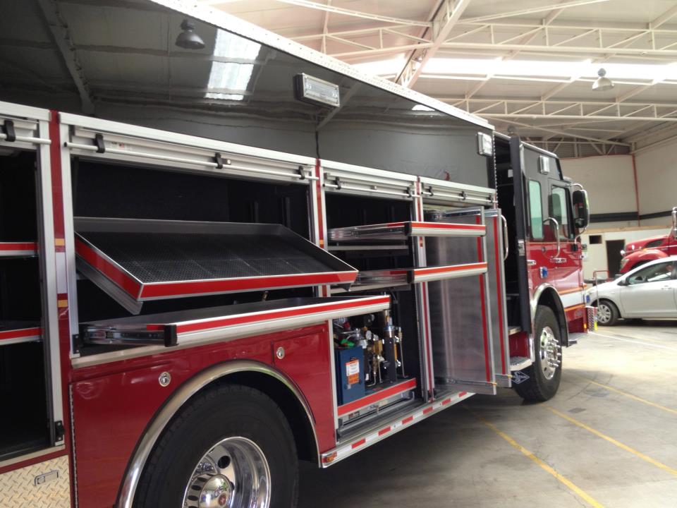 La solución: El espacioso Portaescalas tipo C-8 Spartan Metro Star de almacenamiento interno de Escalas, con motor Cummins de 330 HP y capacidad para 10 hombres, sistema de cascada incorporada para carga de tubos de aire, generador Onan de 40 Kva de potencia, torre de iluminación de gran alcance y cerca de 15 m3 de espacio para almacenamiento de material, aumentando considerablemente la capacidad de respuesta de estas centenarias unidades de «Escalas, Salvadores y Guardias de la Propiedad», máquina que mantiene además el rasgo característico de sus antecesoras en el ángulo de corte inferior de su cola, debido a la difícil geografía de la Ciudad Puerto y sus inclinadas calles.